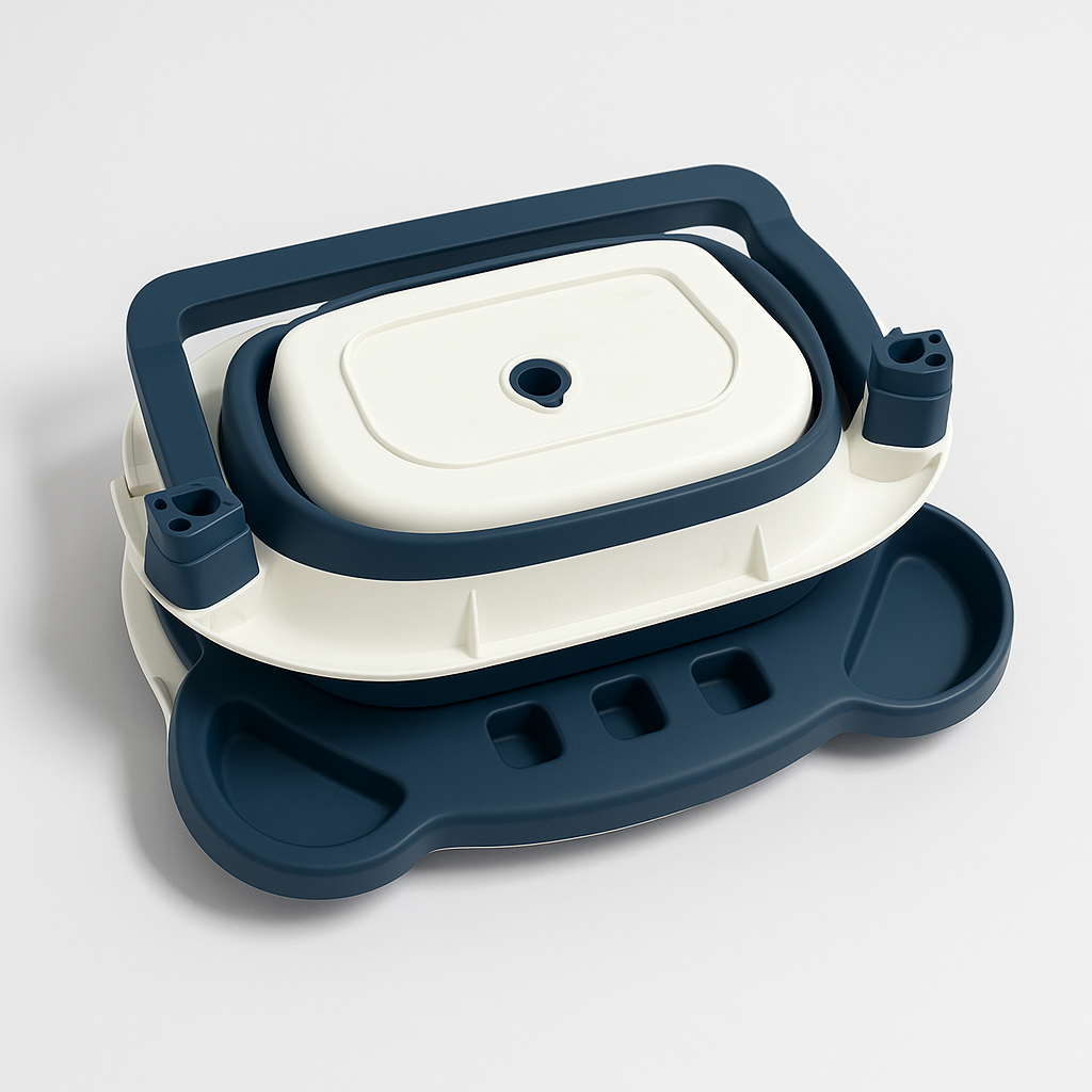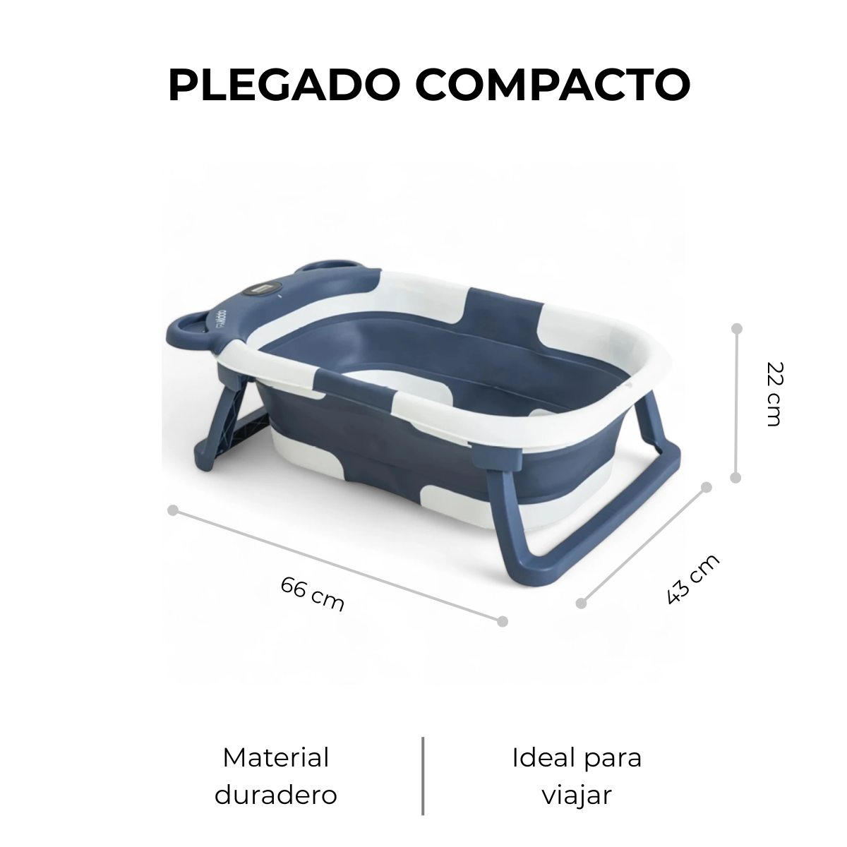 Diseño plegable y compacto: Esta bañera se pliega fácilmente, ocupando muy poco espacio cuando no está en uso. Ideal para hogares pequeños o para llevar de viaje.
