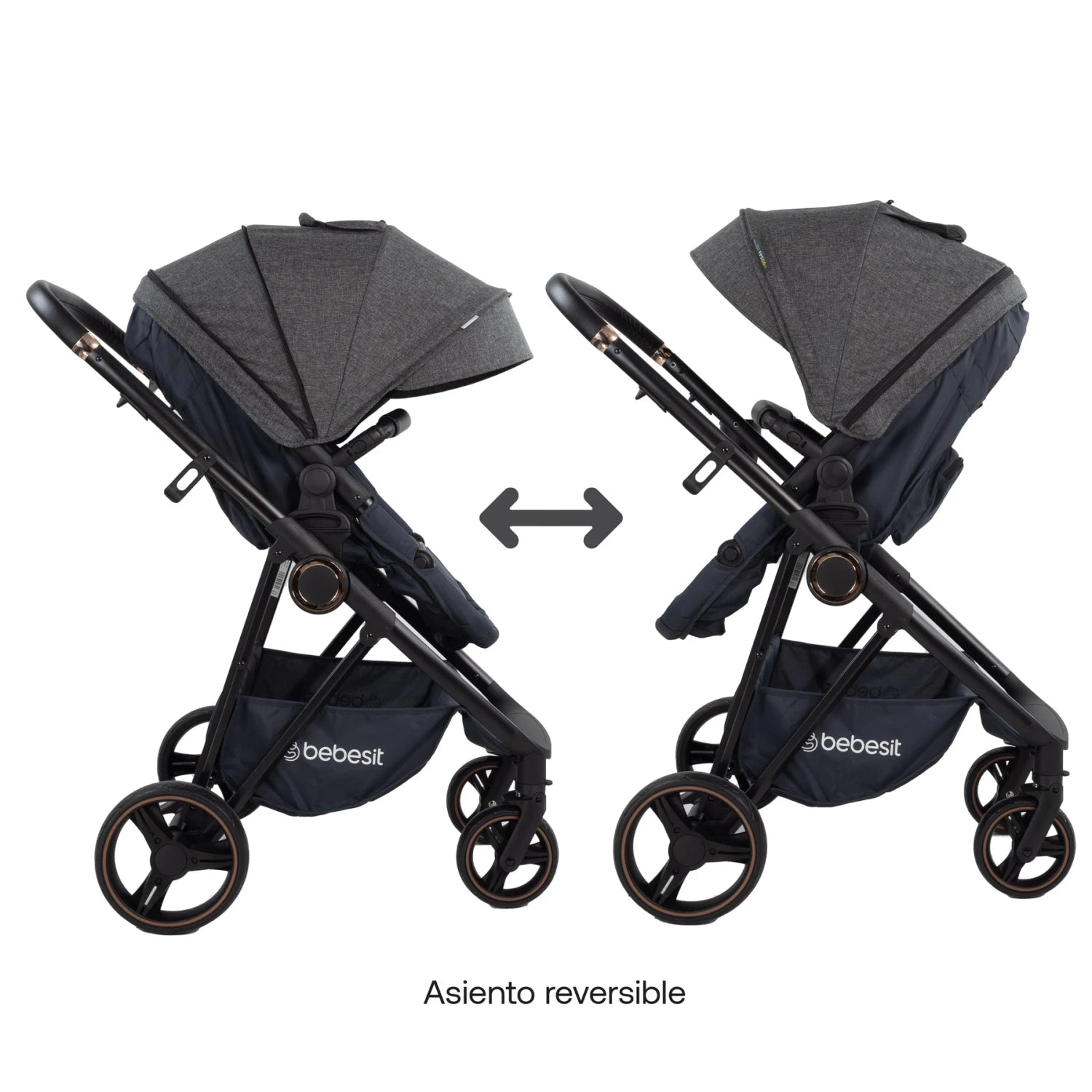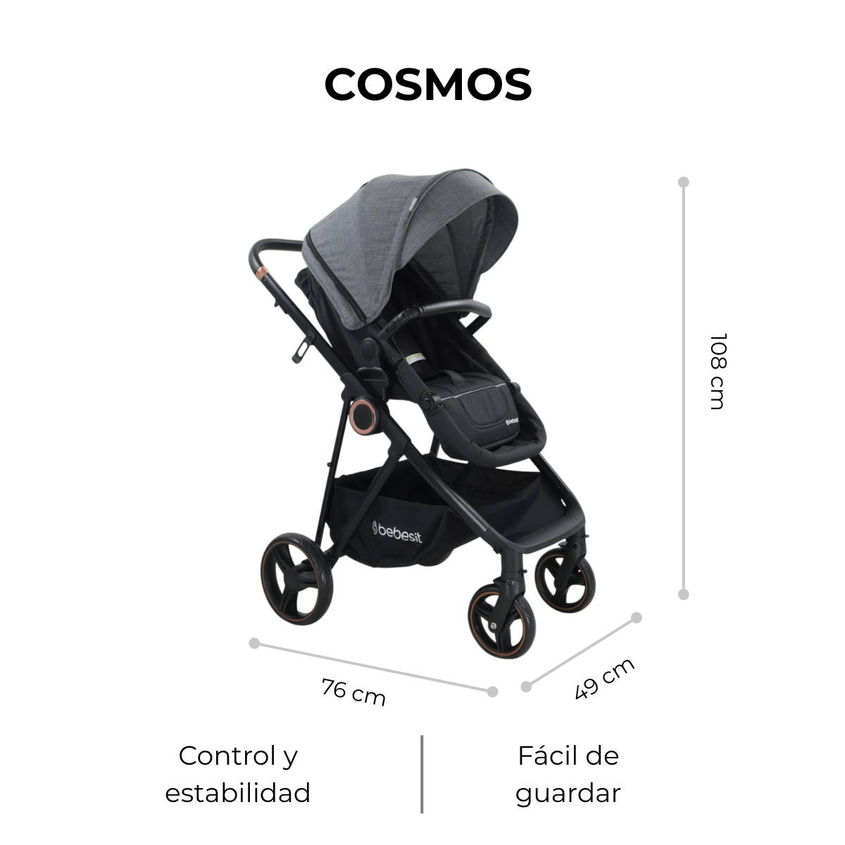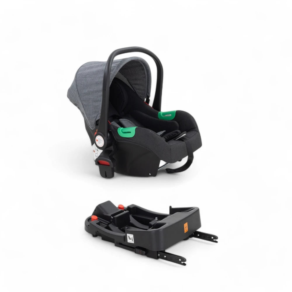 Baby silla para el auto incluida, intercambiable con el asiento del coche (adaptadores incluidos). Según la nueva norma, su uso es desde el nacimiento hasta 87 cm. Cuenta con arnés de seguridad de 3 puntas y sistema de ajuste automático de altura de apoyacabezas y arnés con un solo movimiento.
