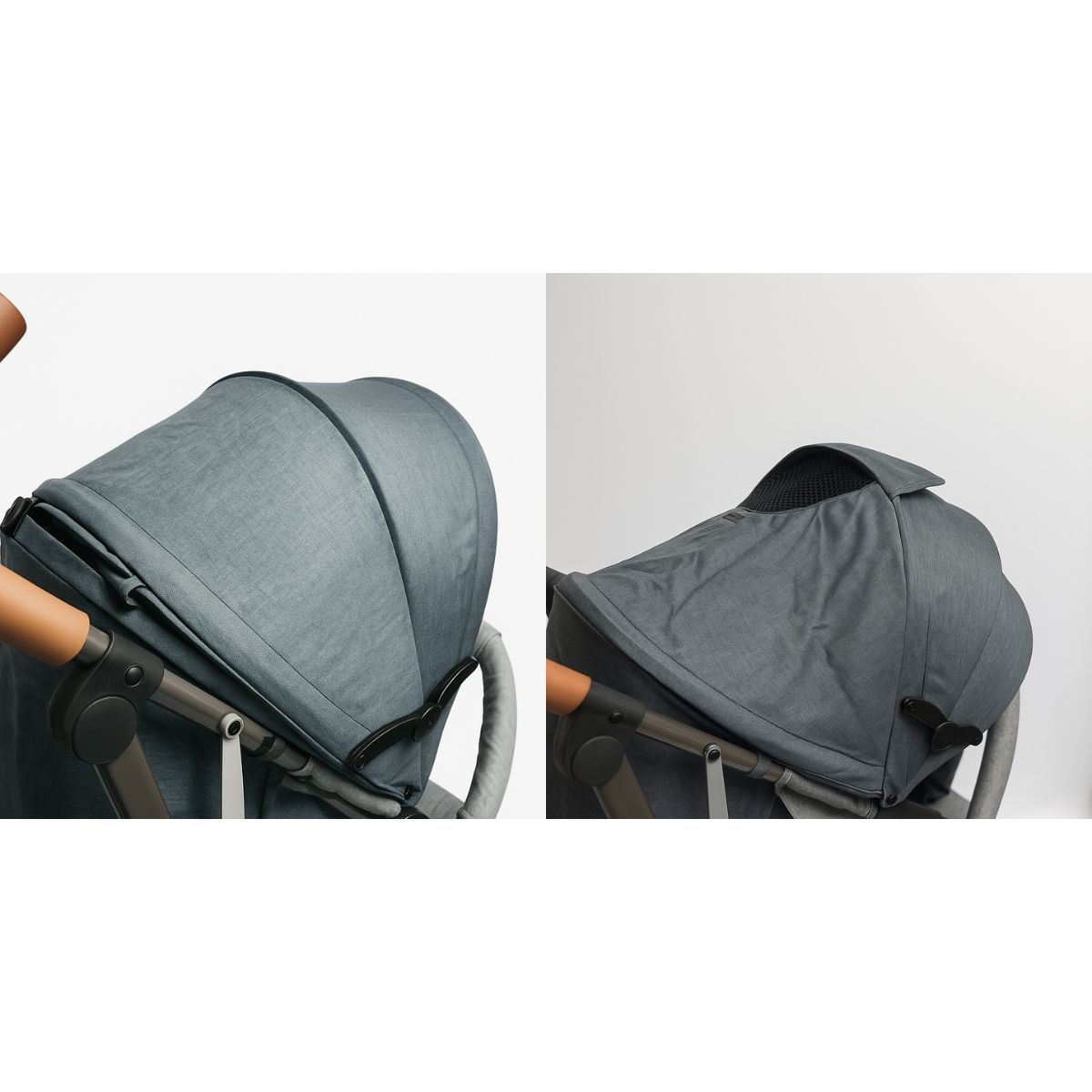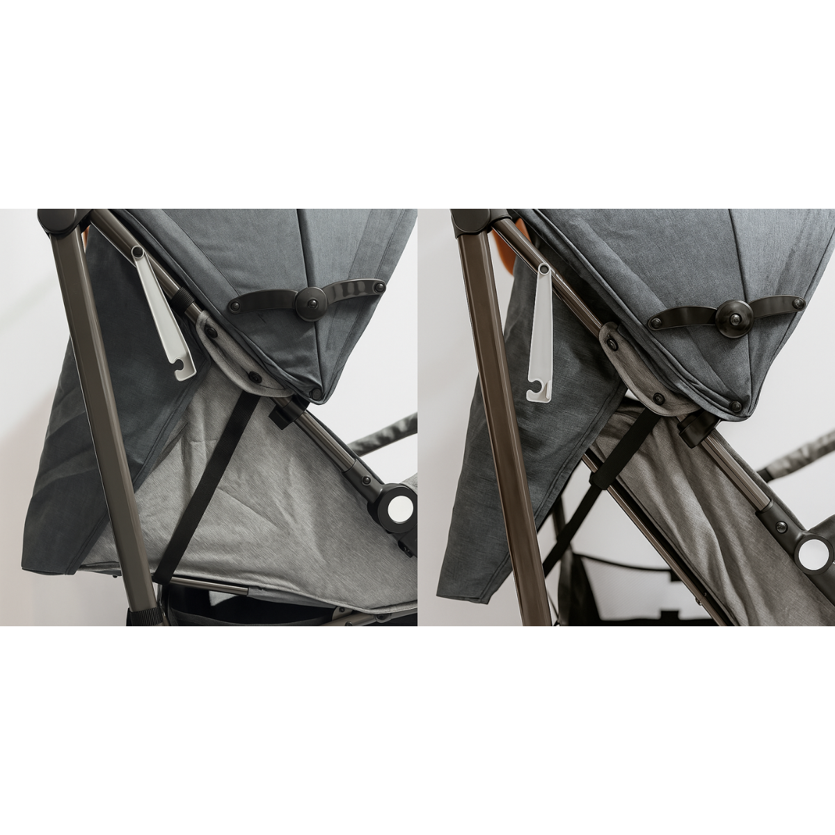 Respaldo con 3 posiciones que se adapta a cada momento del paseo: descanso, observación o interacción.