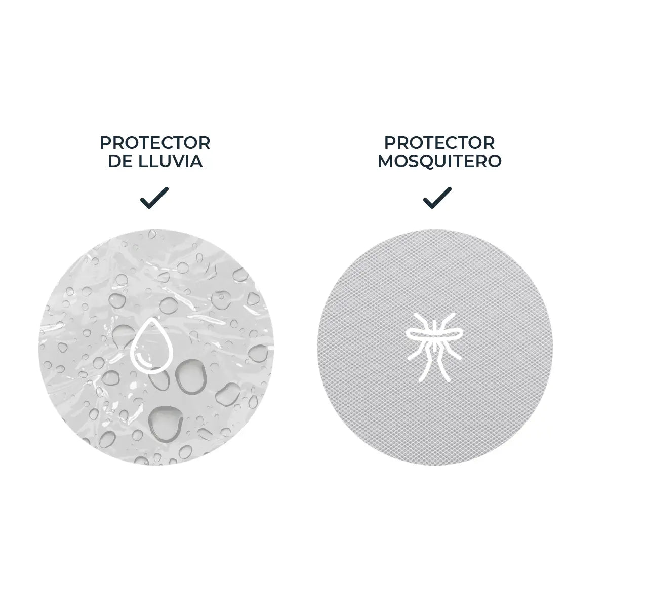 Incluye un cobertor de lluvia con costuras impermeables reforzadas, que protege al bebé del viento y la lluvia.