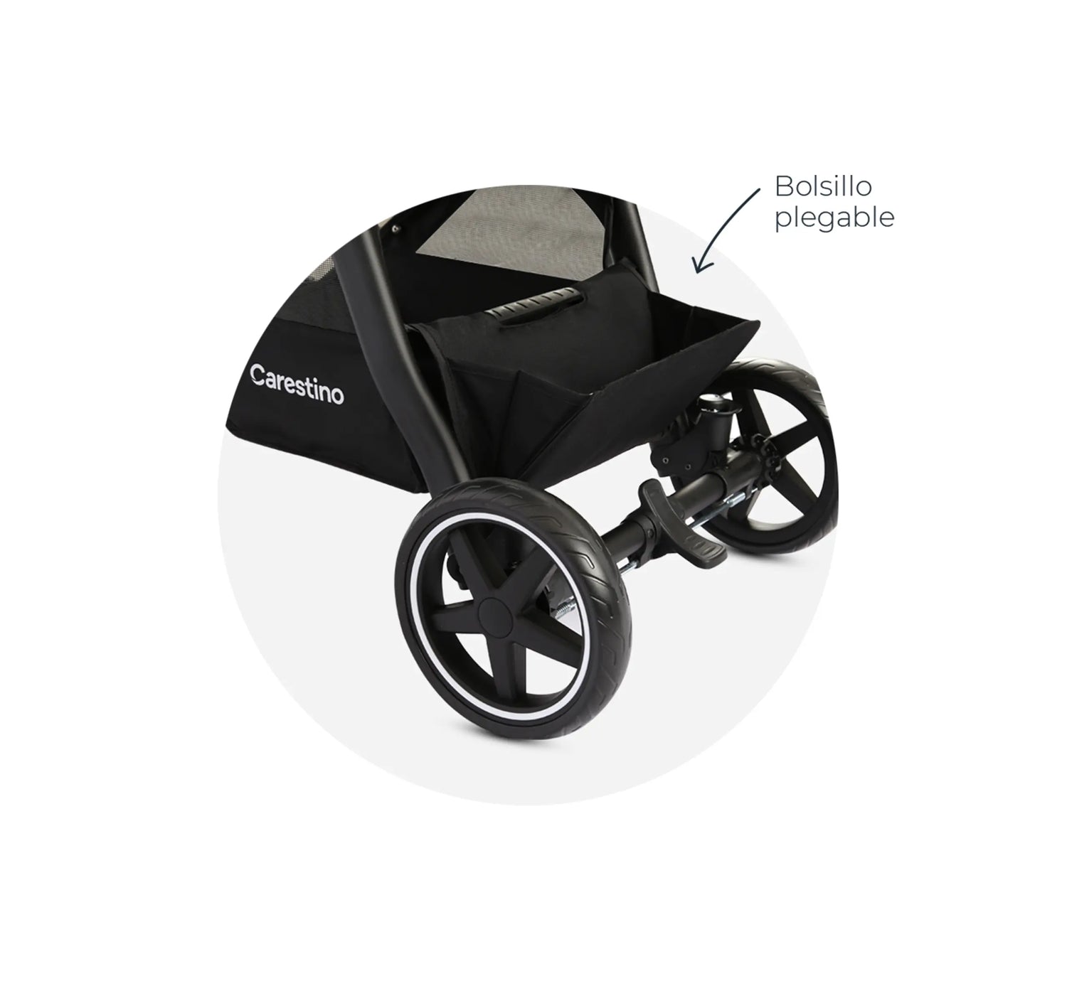 El cochecito cuenta con un canasto portaobjetos muy amplio en la parte inferior. Además, incluye un bolsillo extra plegable que ofrece mayor espacio de almacenamiento y fácil acceso a tus pertenencias, para tener todo siempre a mano.