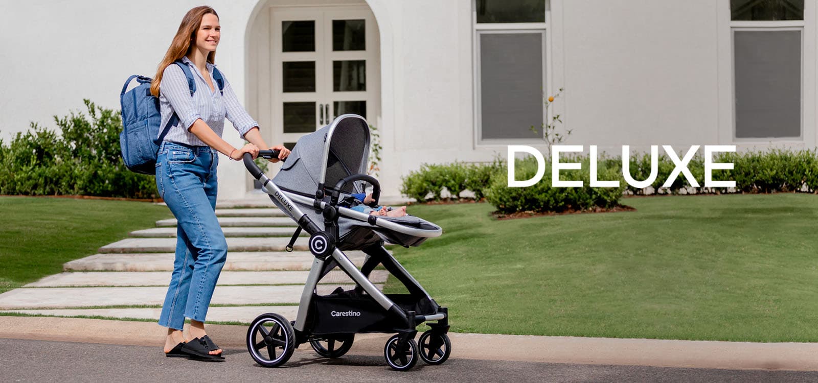 El DELUXE V2 es uno de nuestros modelos más completos. Incluye un huevito y puede transformarse en un práctico moisés. Su estructura rebatible permite ver a tu bebé en todo momento, tanto como cochecito como en su función de moisés. Además, cuenta con un sistema de amortiguación pronunciado que brinda mayor comodidad y estabilidad durante el paseo.