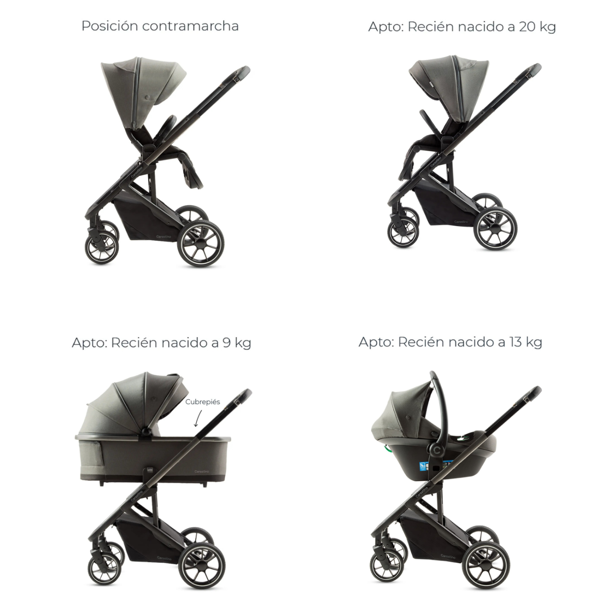 *Se recomienda usar con el respaldo en posición horizontal de 0 a 6 meses.
