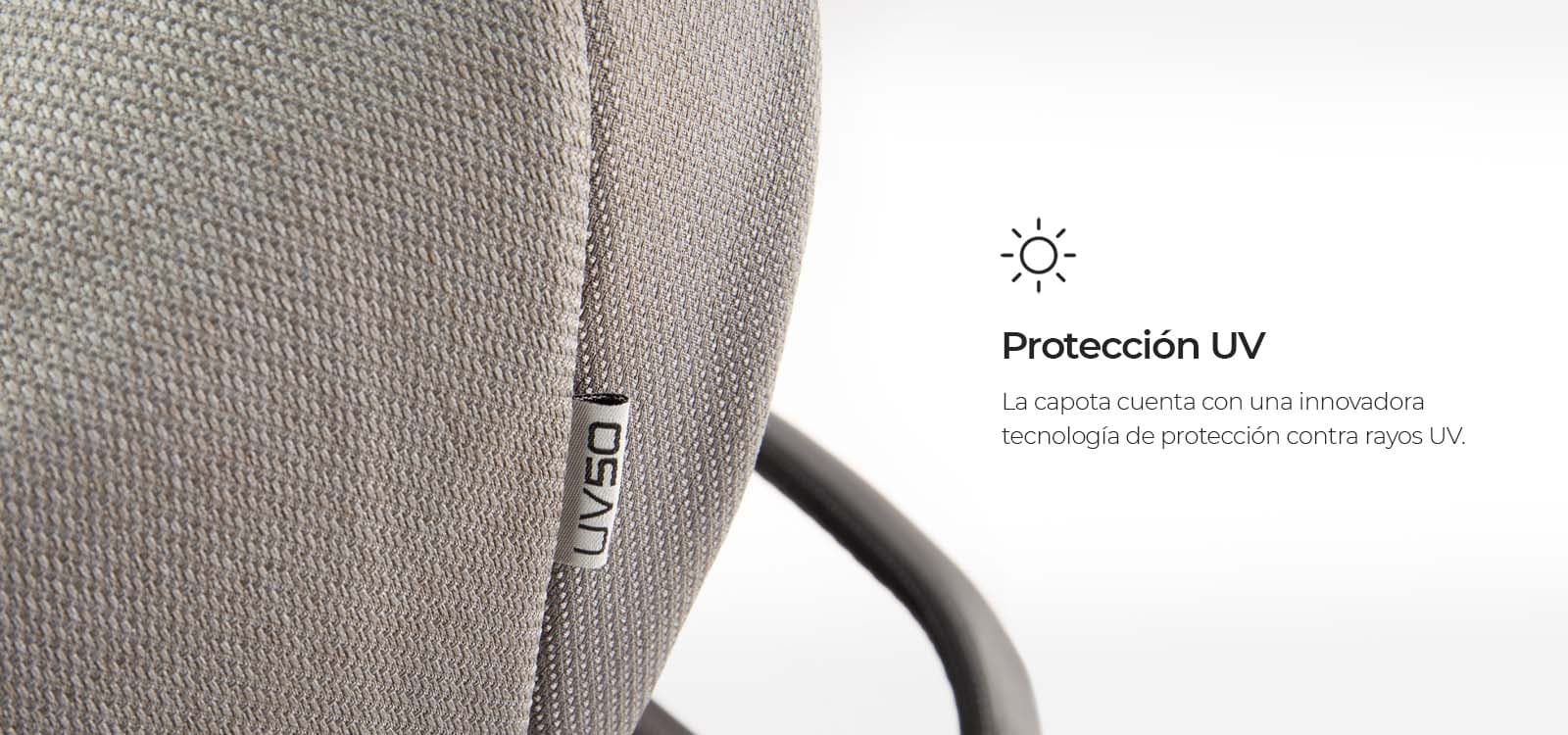 El cochecito GALES cuenta con textiles de alta calidad con tratamientos antimanchas e impermeables, lo que garantiza durabilidad y protección óptima.
