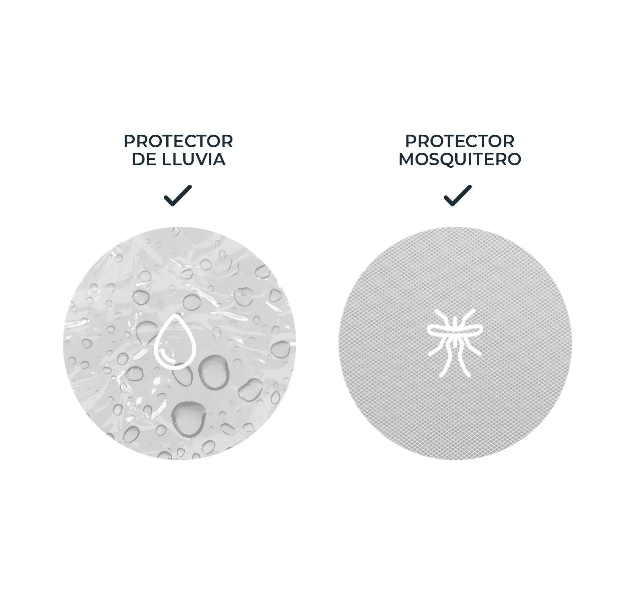 Incluye un cobertor de lluvia con costuras impermeables reforzadas, que protege al bebé del viento y la lluvia.