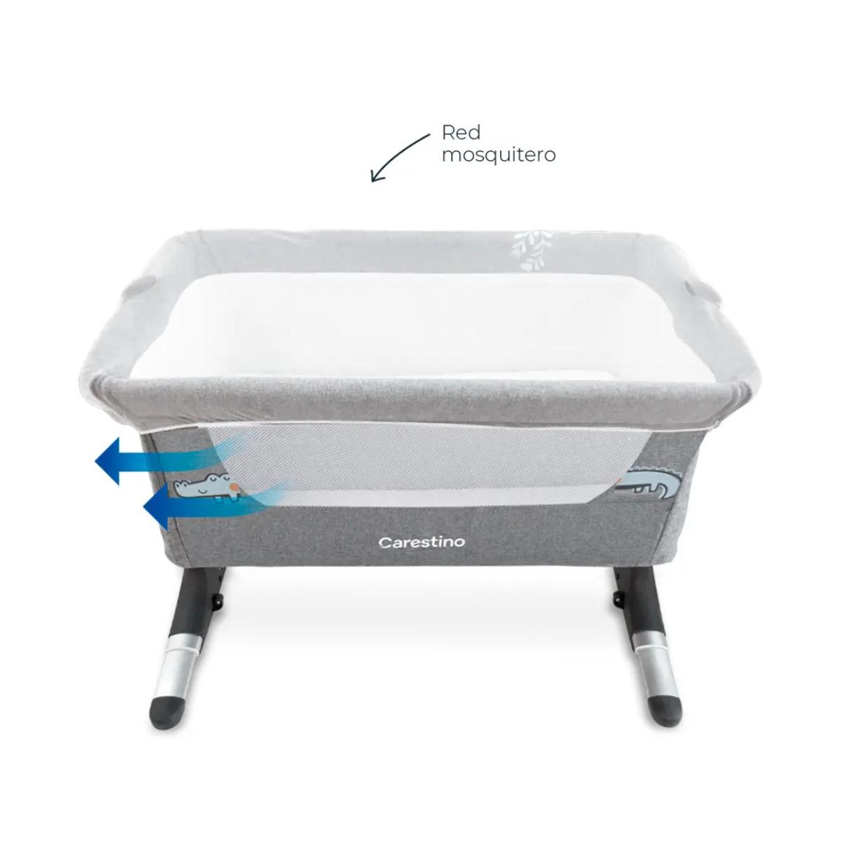 La red mosquitero desmontable cubre toda la cuna y protege al bebé de insectos, manteniendo su comodidad. Los tejidos laterales permiten una circulación constante de aire, creando un ambiente fresco y seguro para un descanso confortable.