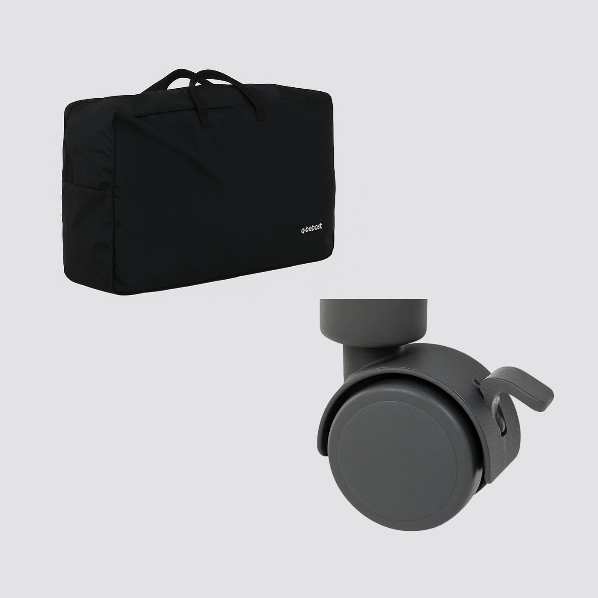 Sus 4 ruedas con freno facilitan el movimiento por la casa. ¿Vas de viaje o querés guardarla? Se pliega fácilmente e incluye bolso de transporte.
