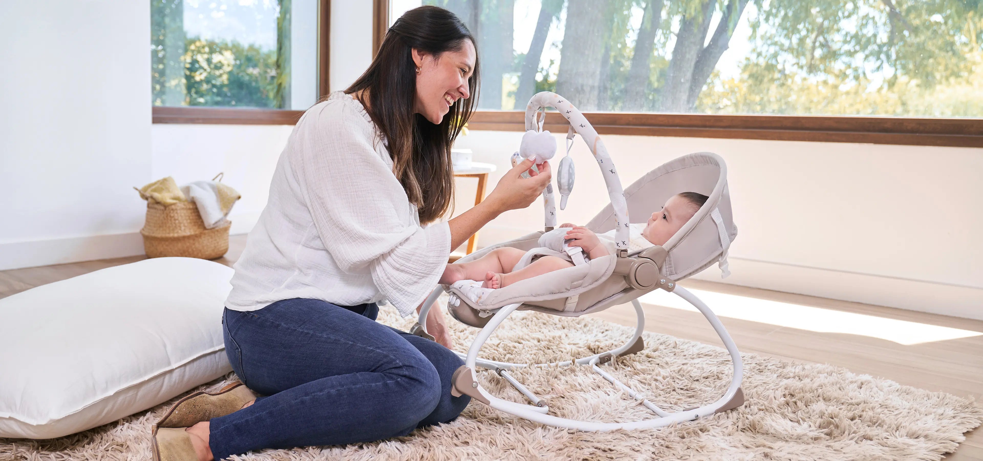 El sistema de balanceo ofrece movimientos suaves para calmar al bebé o mantenerlo entretenido.