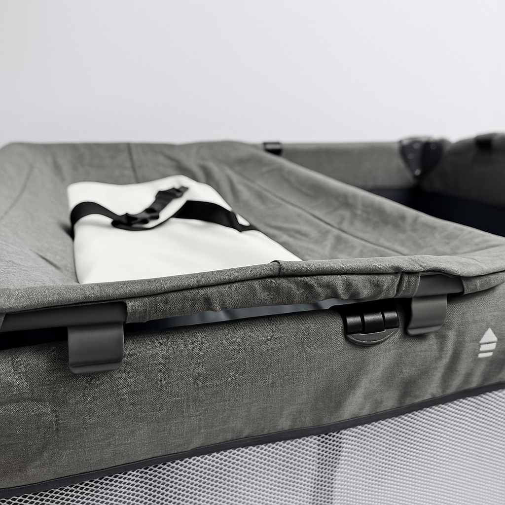 Incorpora un cambiador práctico y seguro que podés instalar o retirar fácilmente según lo necesites. Gracias a su diseño funcional, podrás cambiar a tu bebé en cualquier momento y lugar sin complicaciones, manteniéndolo siempre protegido y cómodo.
