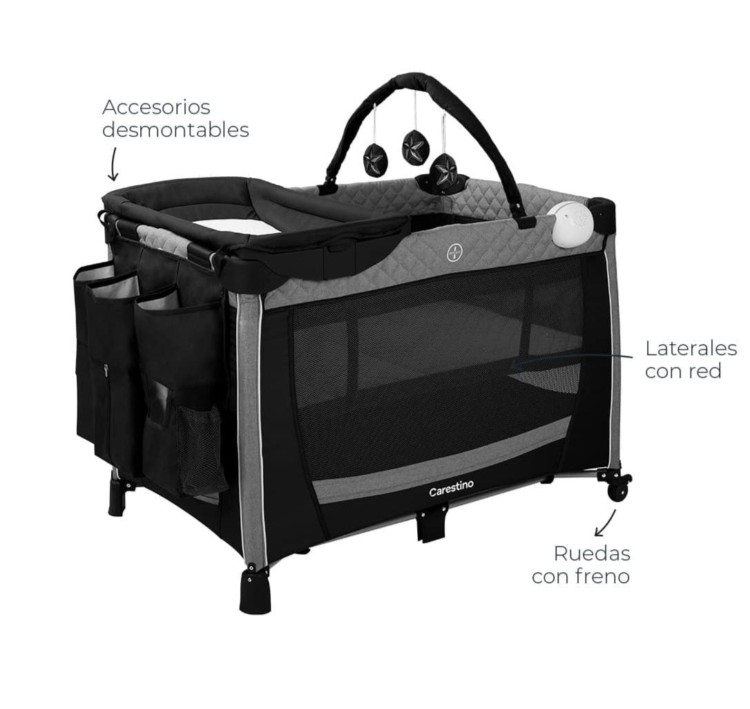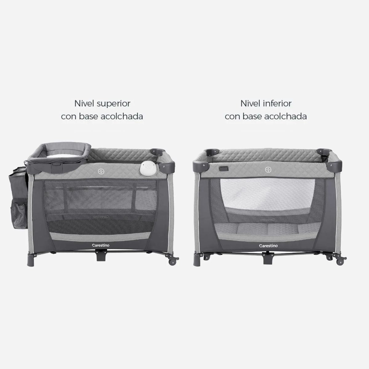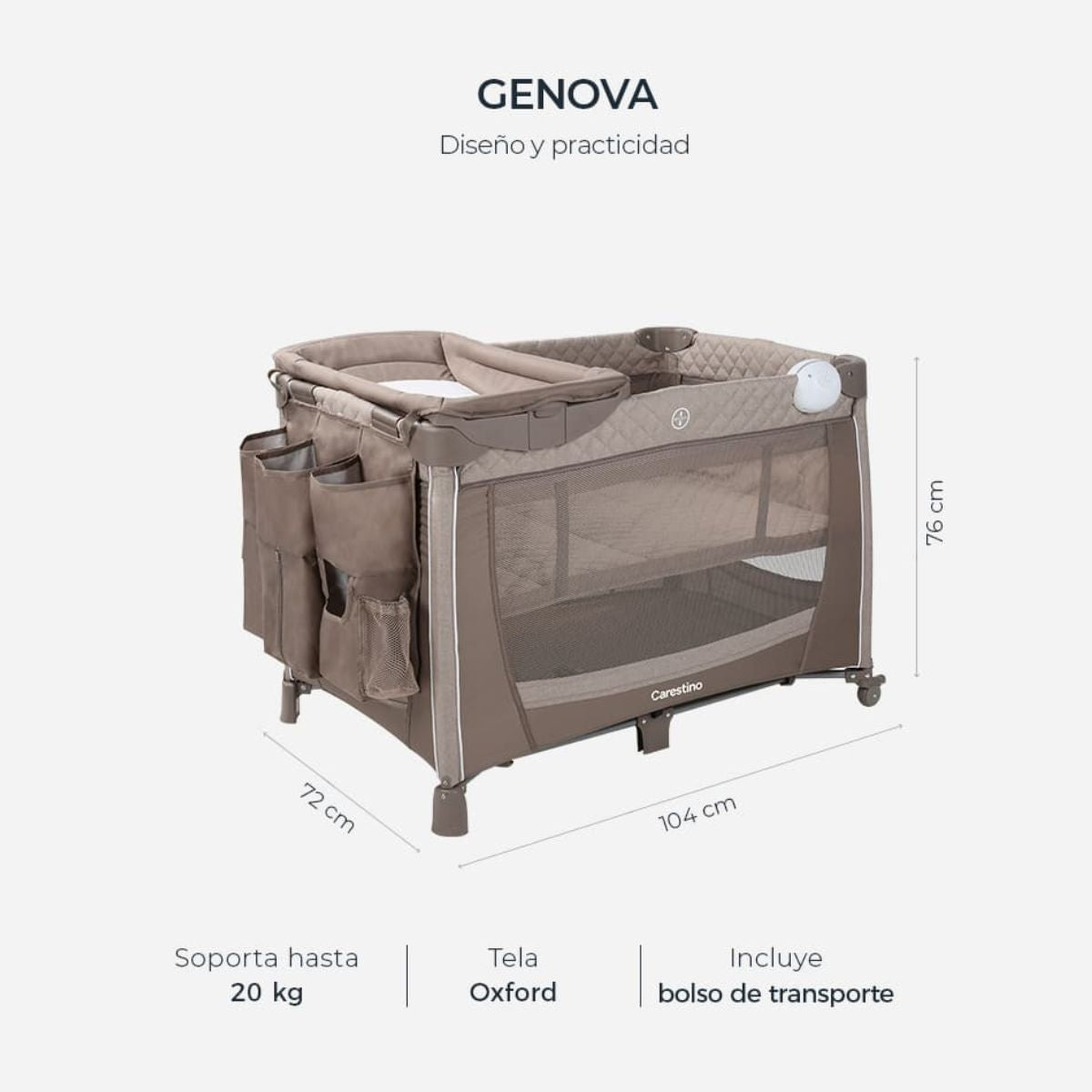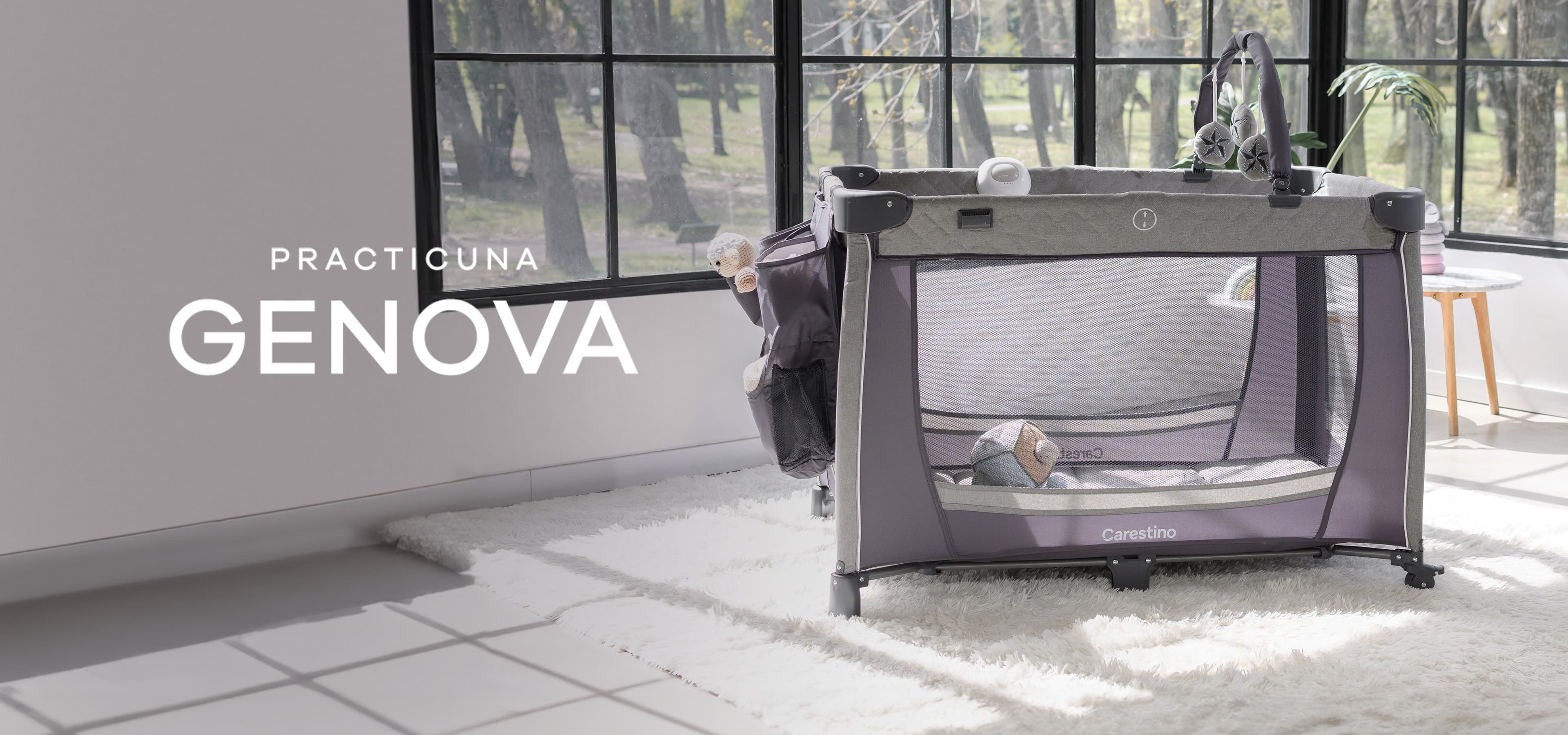 La practicuna GENOVA combina un diseño moderno y elegante, ideal como cuna para el descanso o corralito para el juego. Sus dos niveles ajustables se adaptan al crecimiento del bebé, ofreciendo máxima comodidad y seguridad.