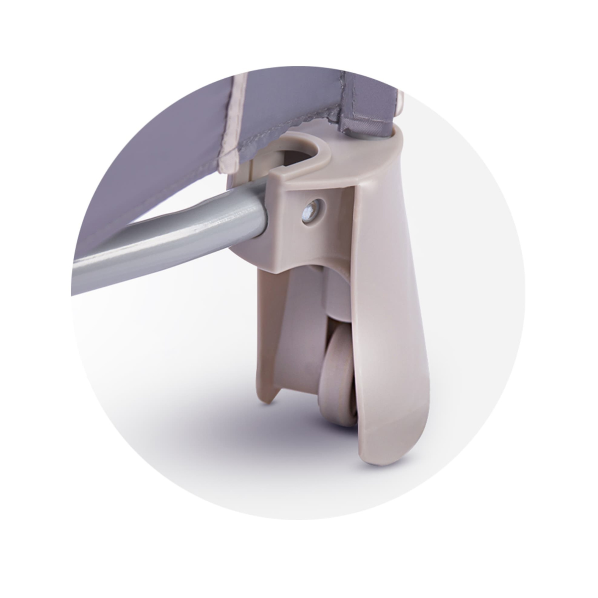 Las patas traseras de la practicuna tienen ruedas ocultas, que permiten inclinarla y moverla fácilmente entre habitaciones sin desarmarla ni cargar peso. Además, este sistema garantiza que la cuna permanezca fija y firme cuando no se mueve.
