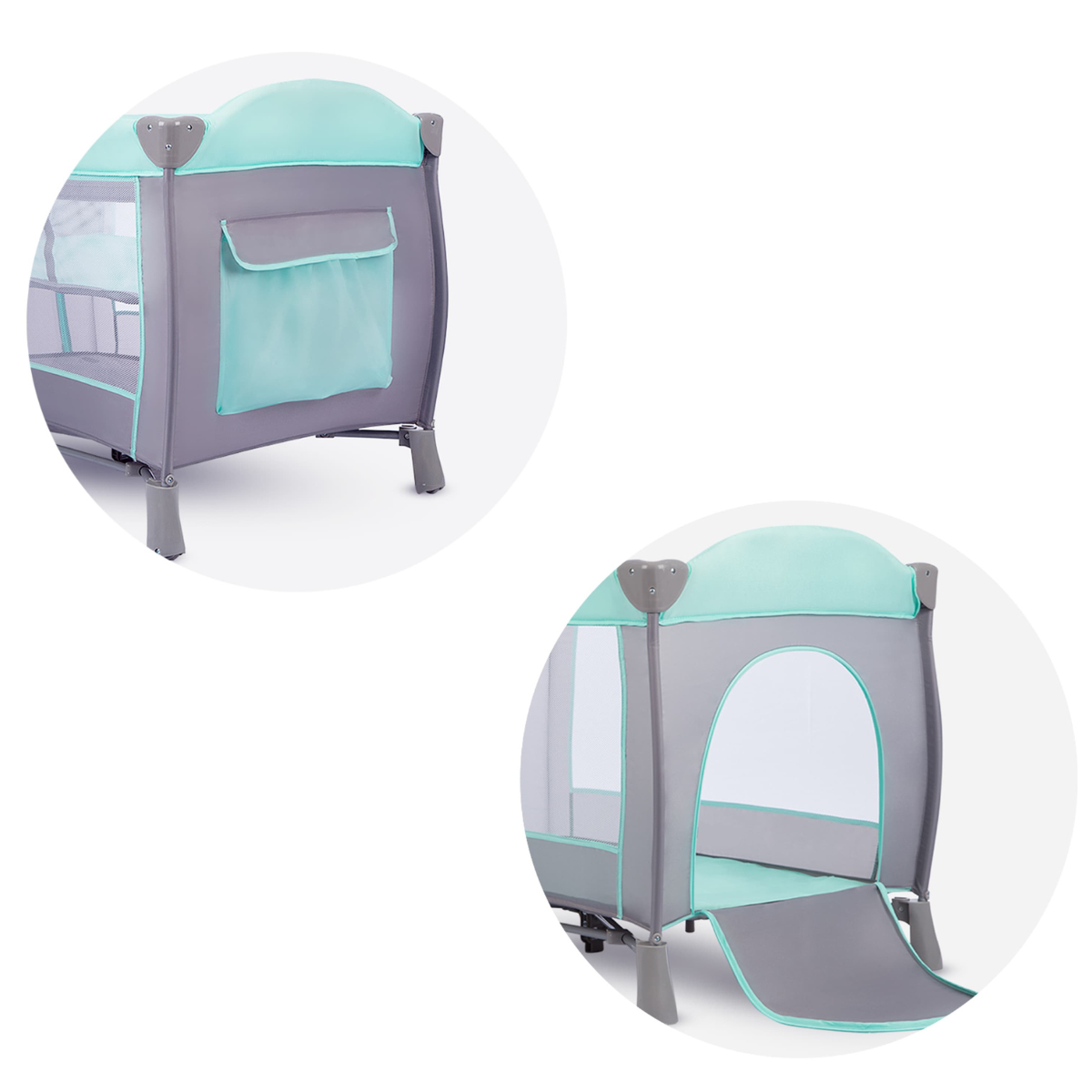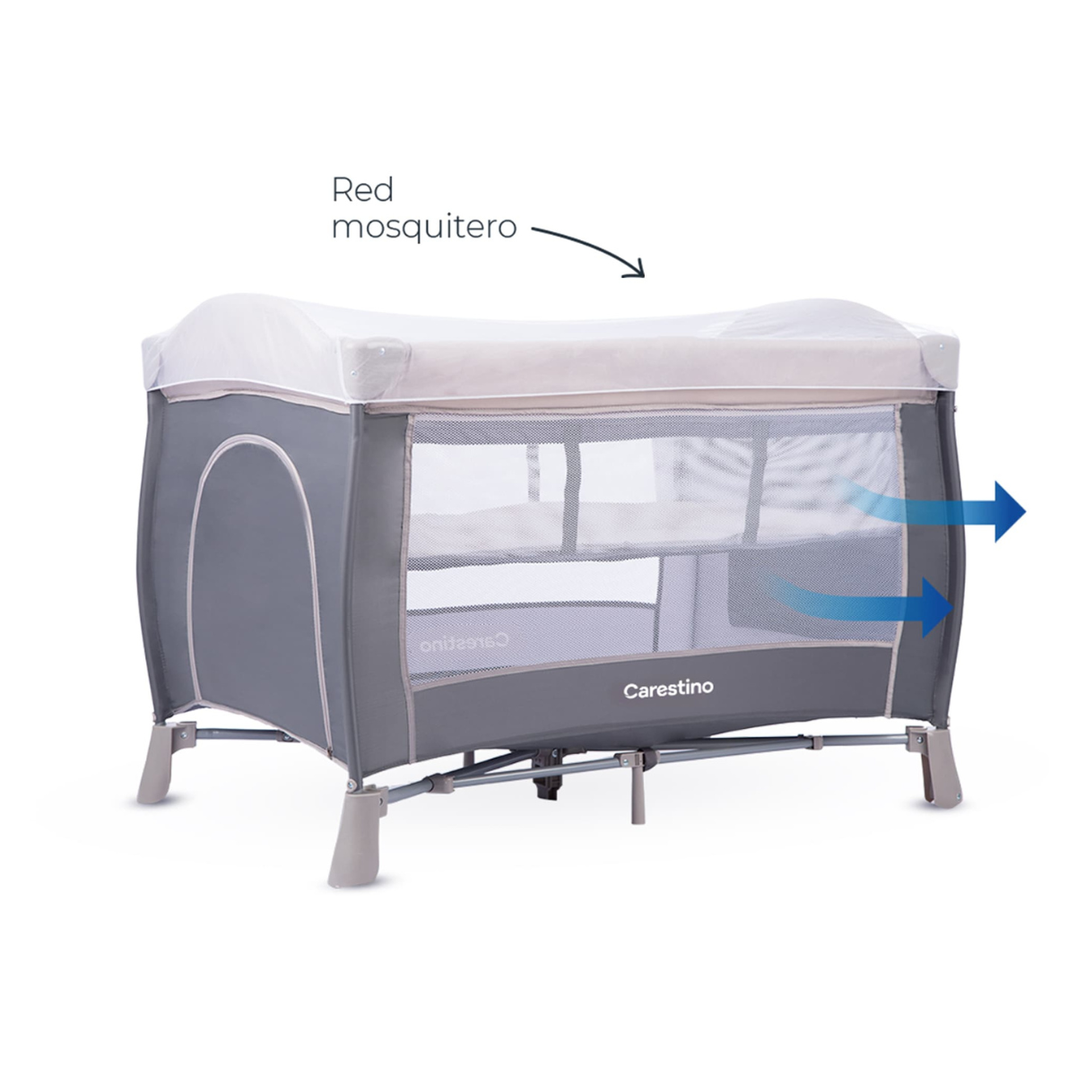 La red mosquitera desmontable cubre completamente la practicuna y protege al bebé de insectos en todo momento. Es fácil de colocar y quitar, asegurando un ambiente libre de molestias para el bebé mientras duerme o juega.