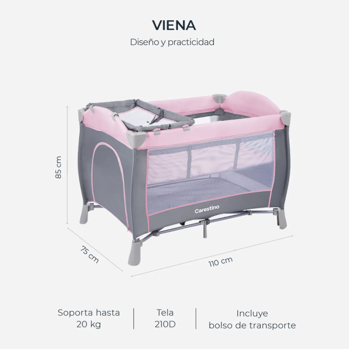 La practicuna VIENA está diseñada para brindar máxima comodidad y seguridad a tu bebé. Ideal para sus primeros momentos de descanso y juego, cuenta con un sistema de ajuste de niveles que permite transformarla fácilmente de cuna a corralito.
