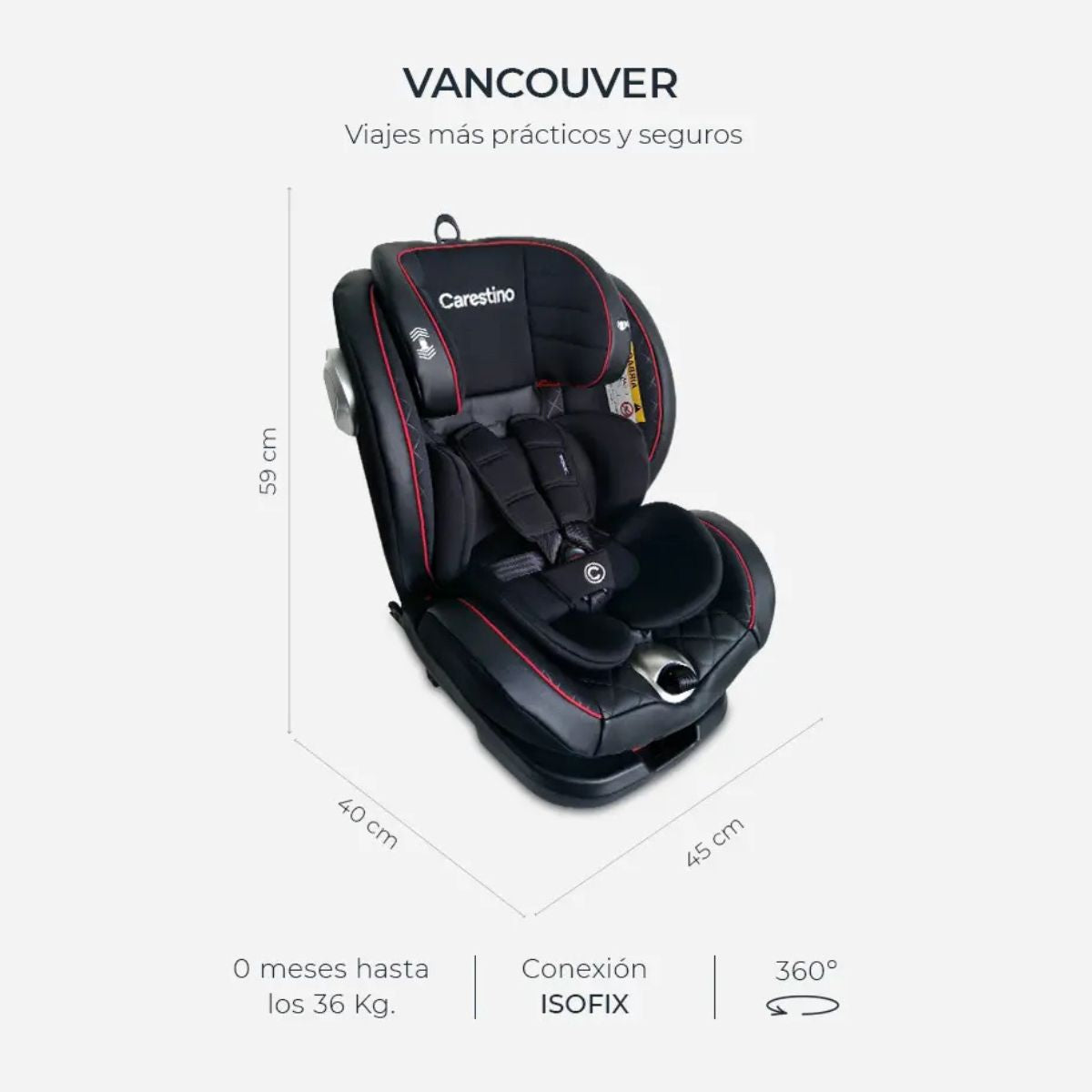 La butaca VANCOUVER tiene giro de 360º, facilitando la colocación y retiro del niño, y ofreciendo mayor comodidad para los padres.