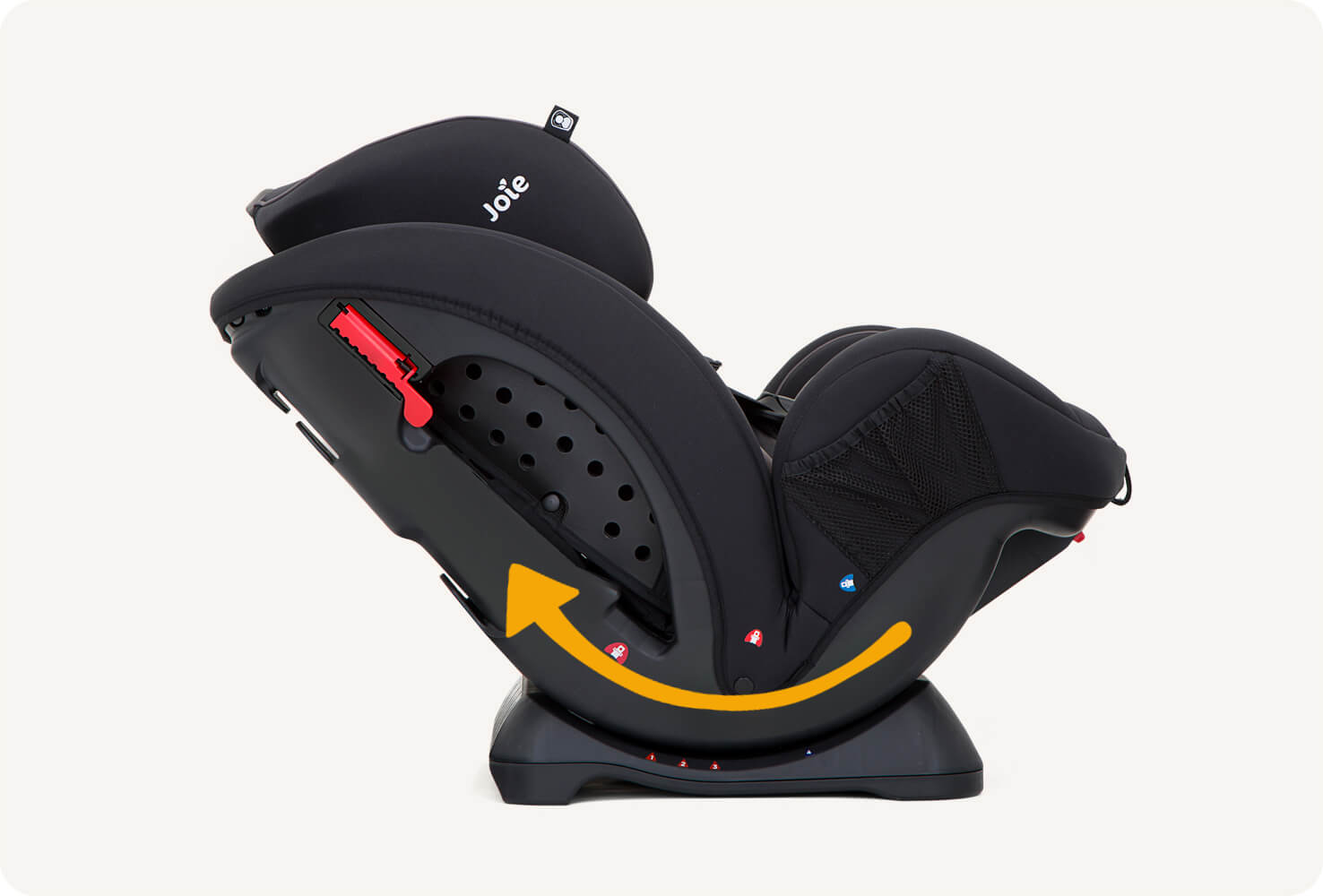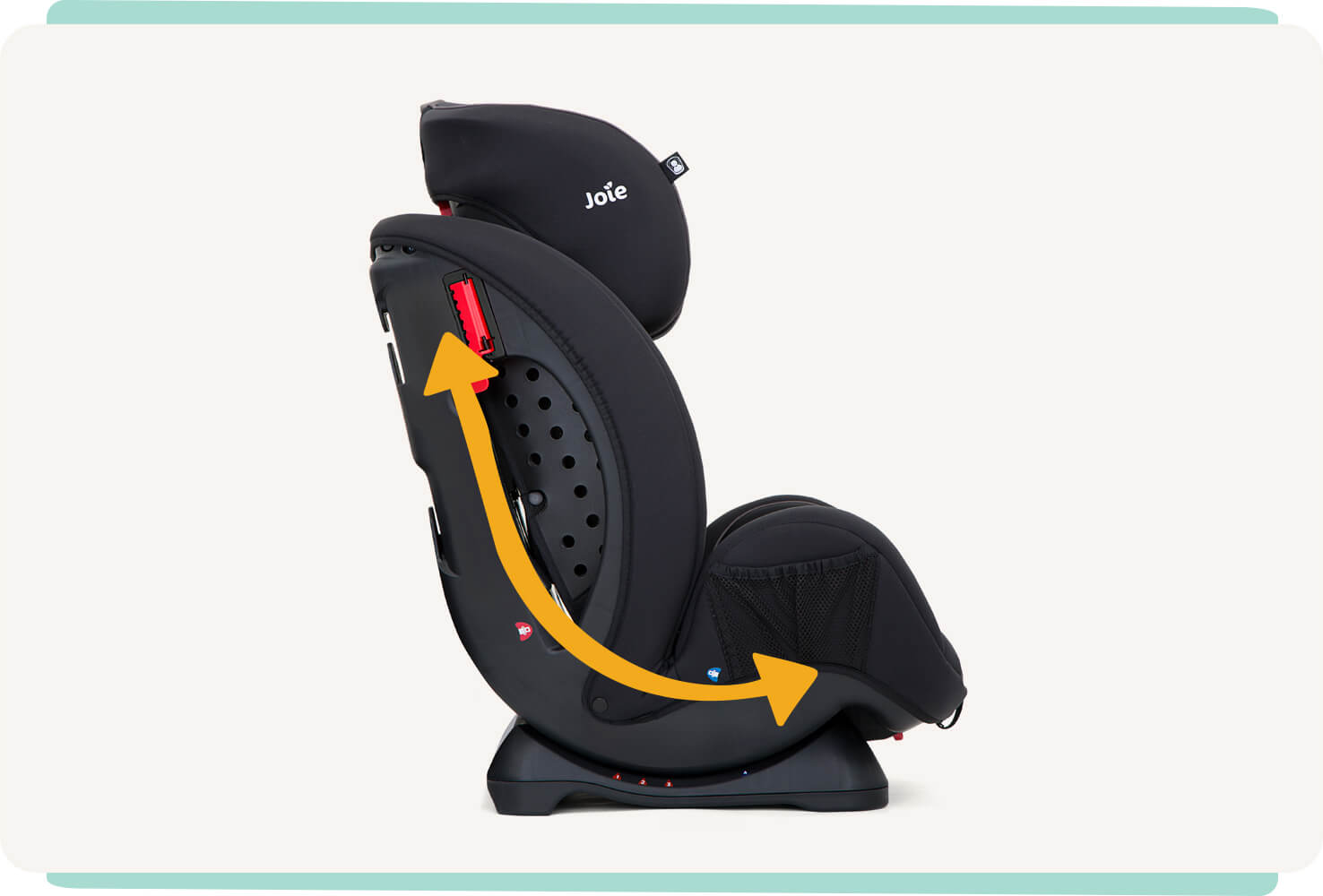 El sistema de reposacabezas y arnés de altura múltiple se ajusta simultáneamente con una sola mano... incluso con la silla de coche instalada, y sin necesidad de recolocar el arnés. Justo lo que necesitas para adelantarte a esos estirones que parecen ocurrir de la noche a la mañana.