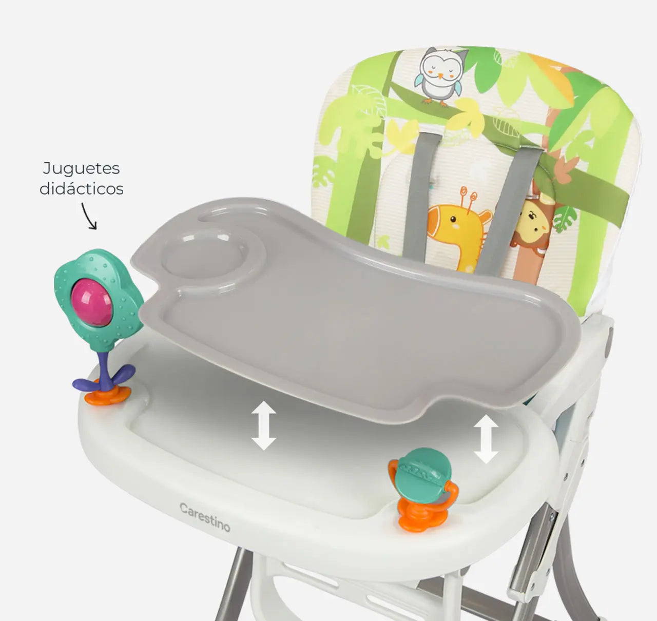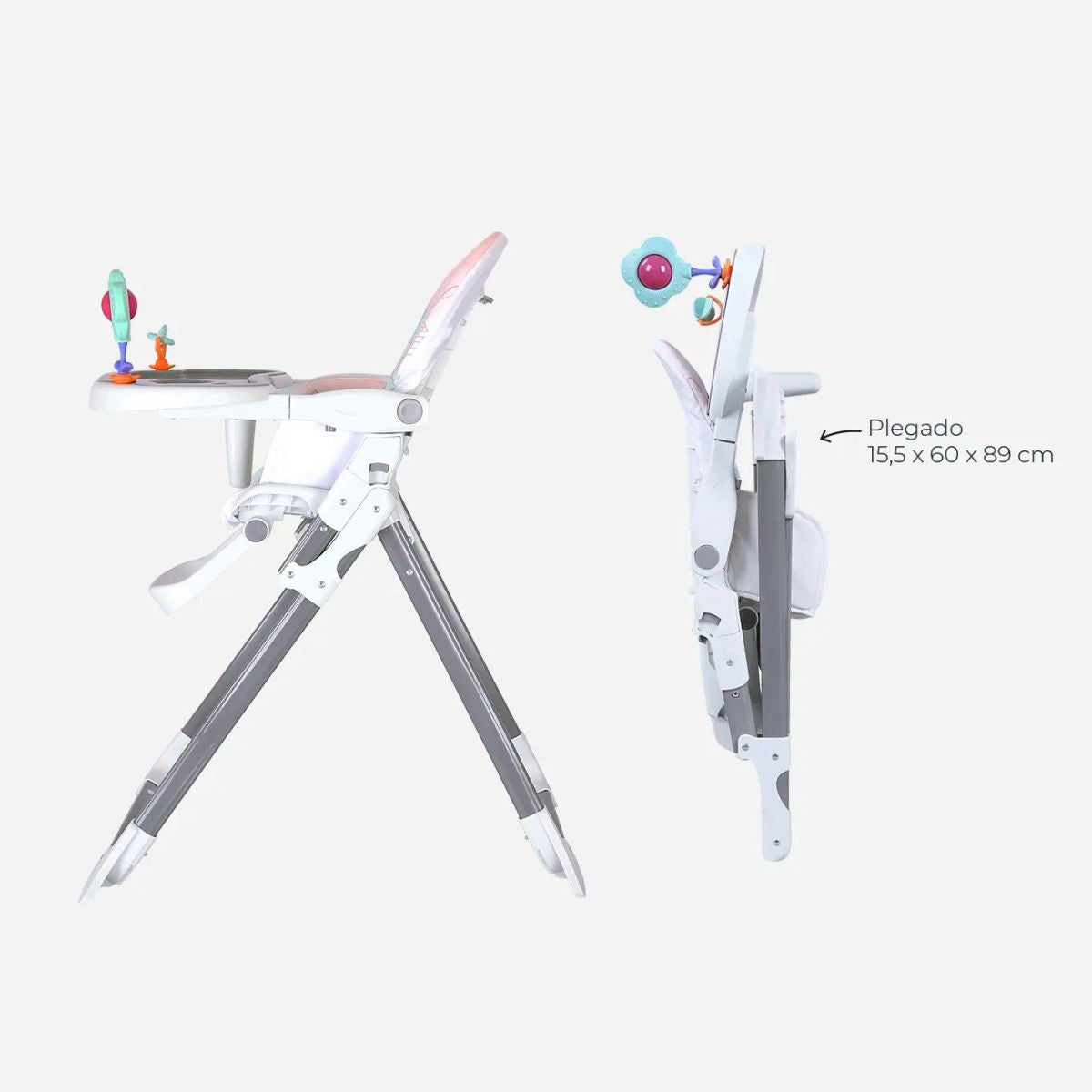 La bandeja extraíble doble de la silla RÍO es fácil de limpiar y hace que la comida sea más práctica. Incluye dos juguetes estimulantes removibles que fomentan la coordinación motriz y el desarrollo sensorial, permitiendo que tu bebé coma de forma segura y divertida.